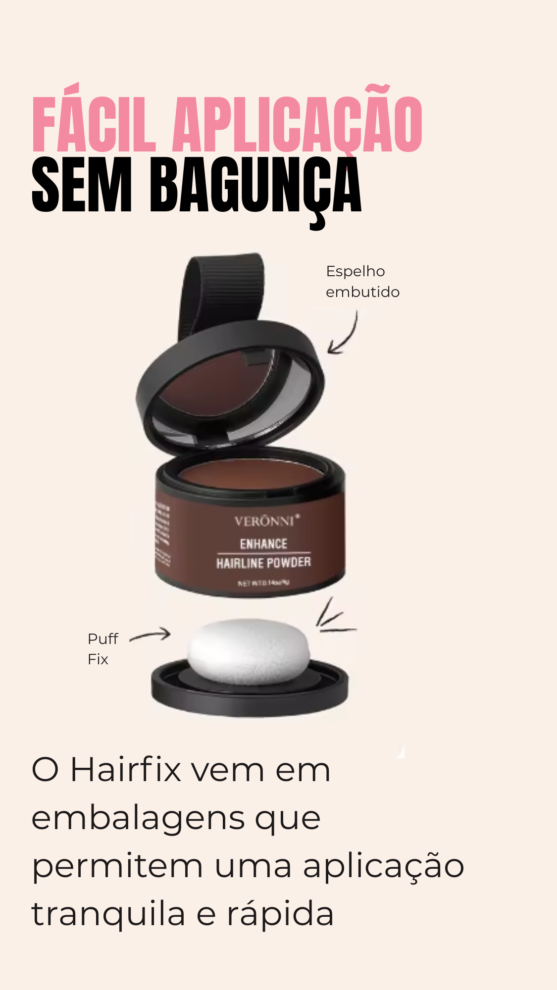 Uso o HairFix pra tampar umas falhinhas na frente e cobrir alguns fios brancos. O aplicador é ótimo, não escorre e dura o dia inteiro. Levo até na bolsa. Já indiquei pra várias amigas!
